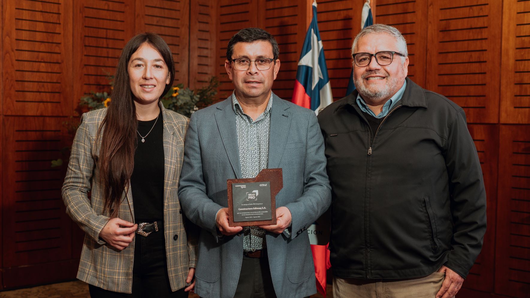 Constructora Edimaq se convirtió en la primera empresa socia de CChC Los Ángeles en recibir el Sello PRO, distinción que reconoce su compromiso con la sostenibilidad, seguridad laboral, bienestar de equipos y relación comunitaria. El reconocimiento fue entregado durante la Asamblea de Socios 2023 por la presidenta Marcela Melo Reyes.