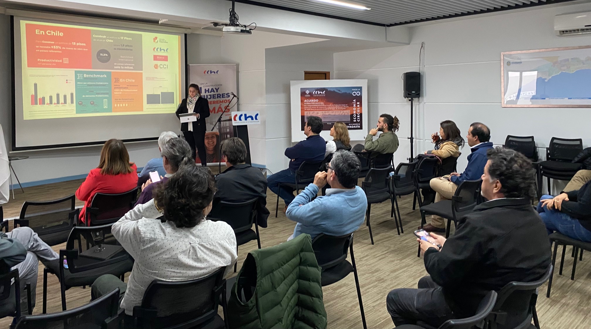 Socios de CChC Antofagasta participaron en la charla "Industrialización y colaboración, juntos aceleramos la transformación", moderada por la embajadora ENCI Josefina Levy. El empresario Jaime Tolosa presentó una propuesta de vivienda industrializada basada en paneles de hormigón prefabricado para la región, organizada junto al Consejo de Construcción Industrializada.